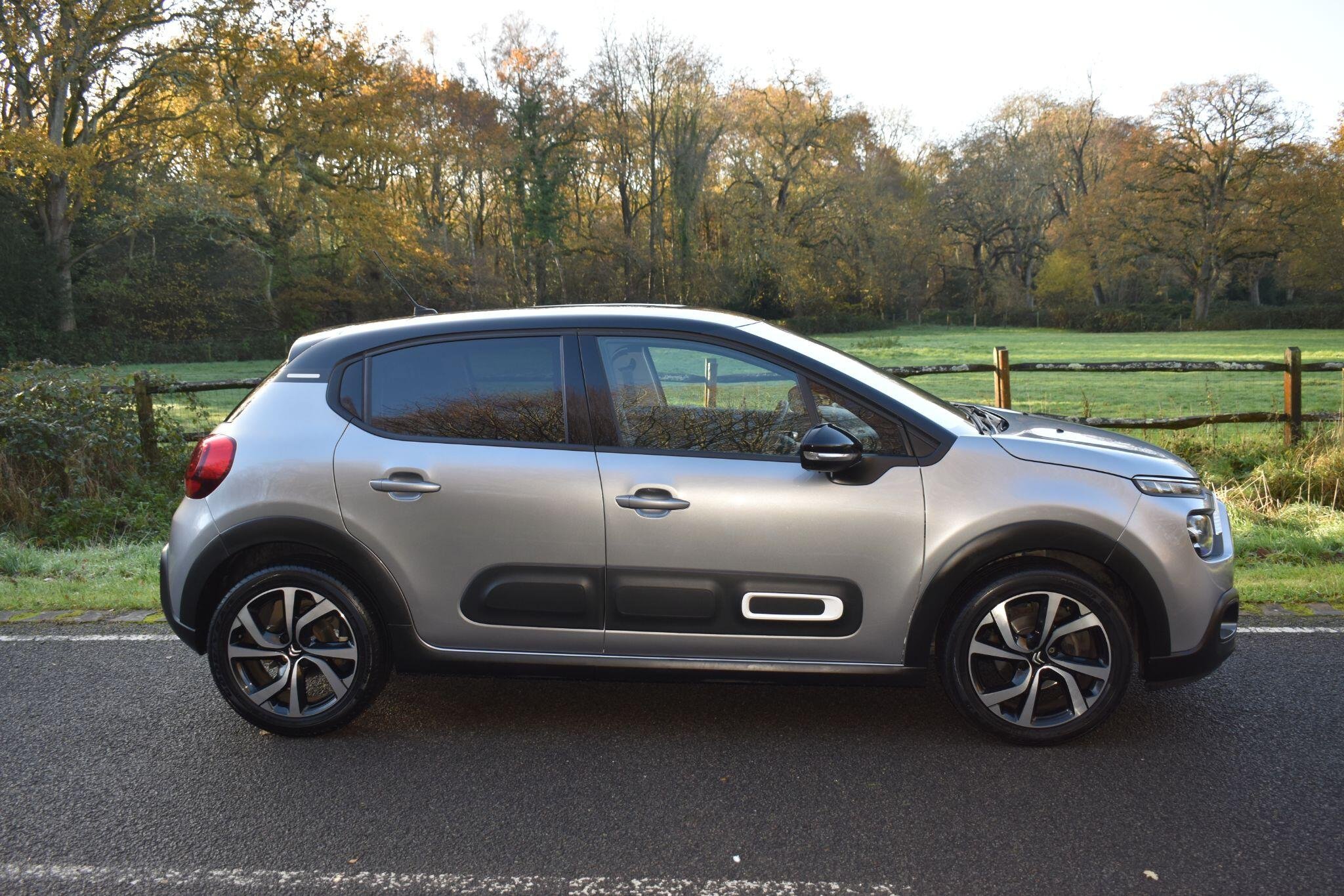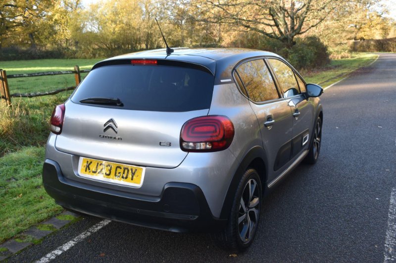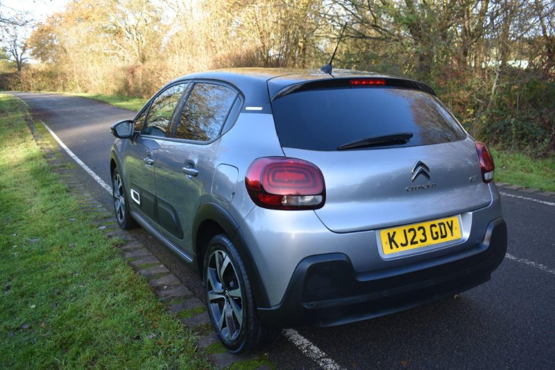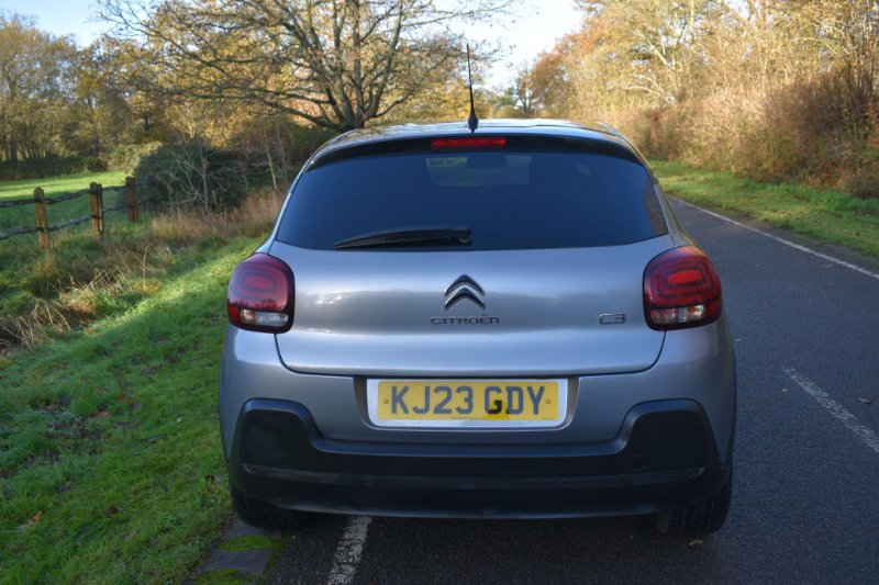 This 2023 Citroen C3 Shine Plus is a superb example, having had only one owner since new. This stylish hatchback is equipped with a responsive 1.2 litre petrol engine and meets Euro 6 emissions standards. Inside, you'll find a comfortable cabin featuring automatic air conditioning for effortless climate control. For convenience and safety, it includes a reversing camera with rear parking assistance and the Visibility Pack, which automatically activates the LED headlights when needed. Staying connected is simple with Citroen Connect Nav, offering Android Auto, Apple CarPlay, and Bluetooth connectivity. Experience impressive efficiency with this C3, achieving a highlight fuel economy of 55 miles per gallon and boasting low CO2 emissions, making it a more economical choice for your journeys. Its performance is also noteworthy, with an acceleration of 0 to 62 miles per hour in just 9.4 seconds, demonstrating a good balance of power and efficiency compared to similar vehicles. This combination of features, efficiency, and single owner provenance makes this Citroen C3 Shine Plus a compelling option. Finished in Grey with cloth interior, one owner from new, privacy glass, rear parking sensors, 6 speed manual, remote central locking, electric windows, electric mirrors, cruise control, Bluetooth, reverse camera with guide lines, sat nav, DAB radio, HPI clear, finance available with this vehicle.... for further information please contact us on 01483 236417.